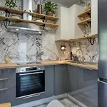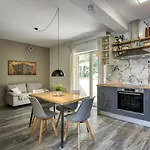 Használja az apartmanban elérhető felszerelt konyhasarok lehetőségét, amely elektromos vízforralóval, mosogatógéppel és hűtővel van felszerelve az ön kényelméért.